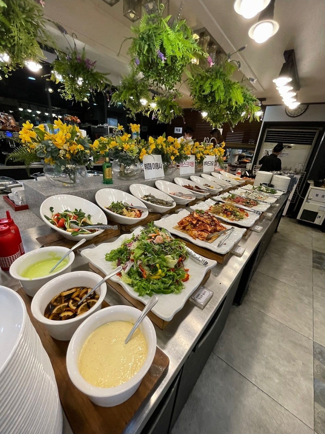 다양한 셀러드에 고기류, 초밥류 등등